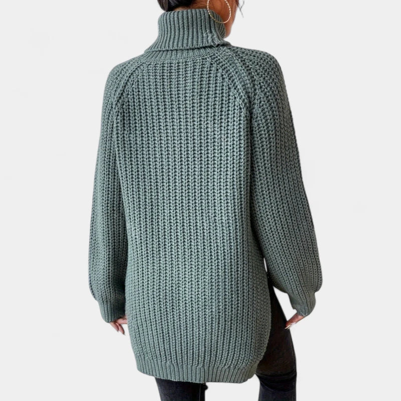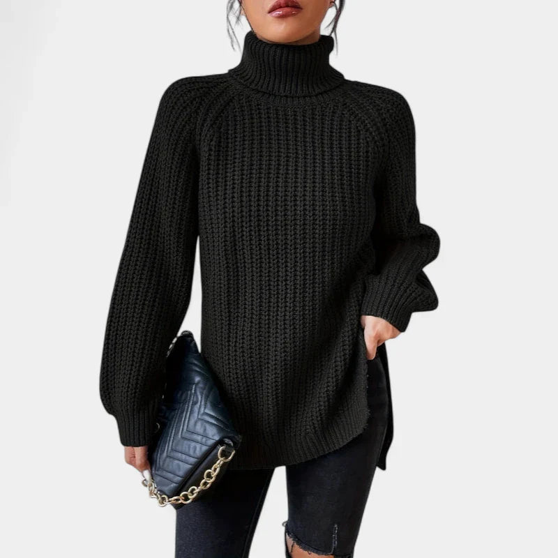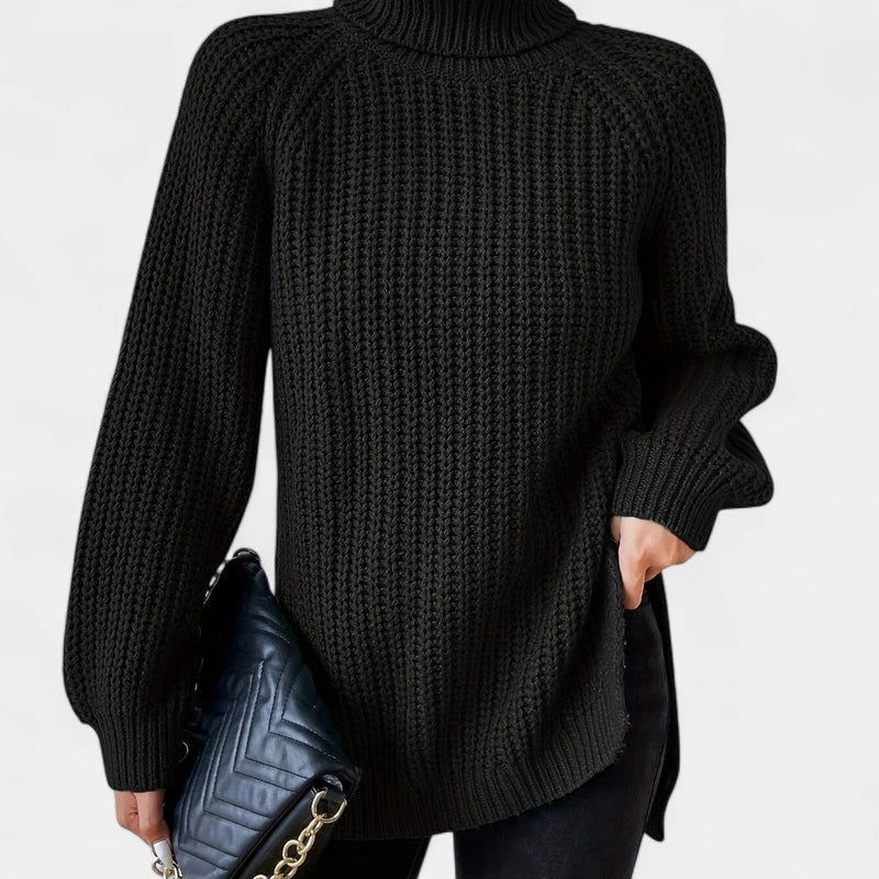 Adela™ to sweter, który zapewnia ciepło bez utraty stylu. Wysoki kołnierz chroni przed zimnem, a miękka dzianina zapewnia optymalny komfort i wygodę noszenia. Subtelny rozcięcie z boku zapewnia dodatkową swobodę ruchów i sprawia, że sweter nadaje się do codziennego użytku lub relaksu w domu.