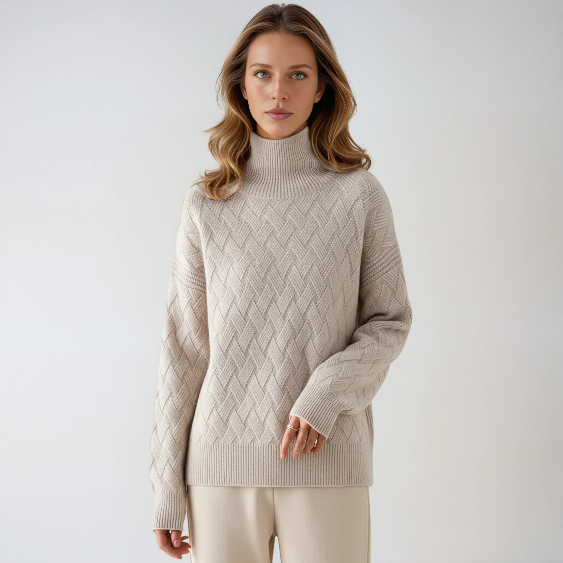 Sweter Avina to Twój nowy niezbędny element garderoby na zimę: ciepły, elegancki i wszechstronny. Wysoki kołnierz chroni przed zimnem, a dzianinowa struktura nadaje mu luksusowy wygląd bez przesady. Idealny na chłodne dni — niezależnie od tego, czy nosisz go w domu z wygodnymi spodniami dresowymi, czy pod płaszczem podczas wypraw na świeżym powietrzu.