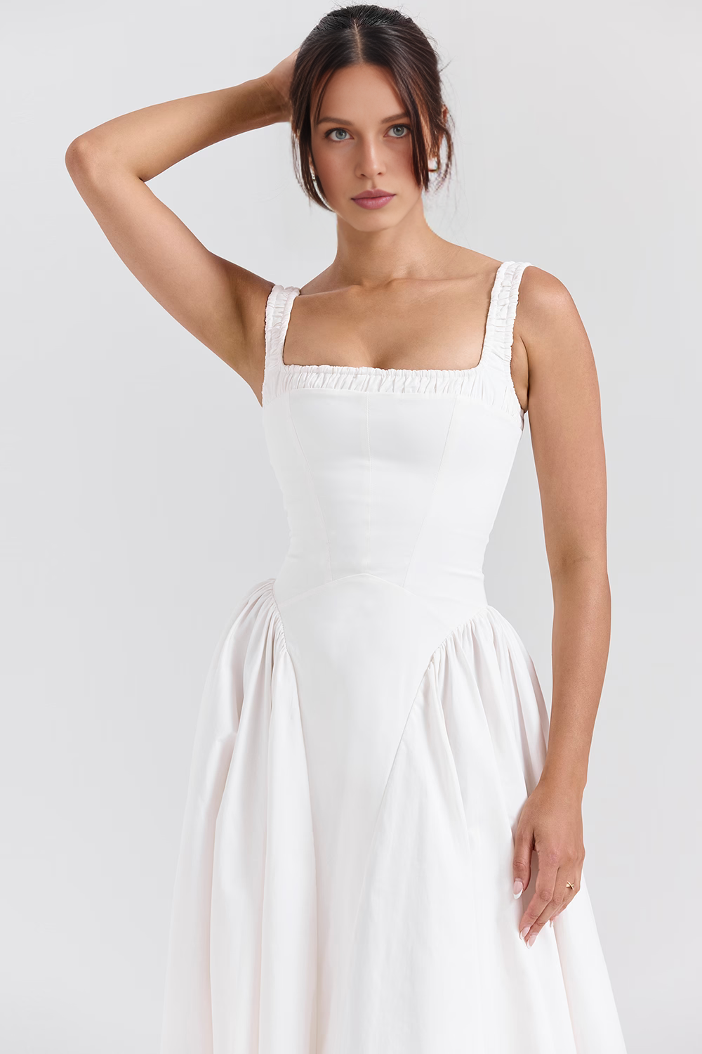 Bardzo ładna sukienka! Leżała idealnie (mam miseczkę C) i czułam się w niej naprawdę kobieco. Koronkowa talia odsłania wystarczająco dużo skóry, ale nie jest zbyt wycięta. Materiał jest dość gruby, nie tak cienki, jak się spodziewałam.